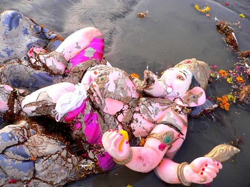 This festival, brings together thousands of people but in modern times is also contributing to serious environmental pollution. Besides the noise created by the several Ganesh mandals during the festival, the immersion of idols made out of chemical materials causes significant water pollution. The traditional mud idols have been replaced by plaster of paris statues which are then painted using toxic chemical dyes to make them bright and attractive to buyers. These materials poison water bodies, by increasing chemical and organic content. In the process, ecosystems in these water bodies gate harmed and plant and fish species die in large numbers. Water that has been polluted in this way can cause diseases when drunk by people living downstream.